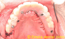 この症例のポイントは、ソケットリフト部位への即時負荷でしょう。アダプテーションテクニックにより40ニュートンの初期固定がえられました(専門的になってしまいましたね)。 麻酔専門医の先生が静脈内鎮静法を行っていますので患者さんは半分寝ているうちに手術が終わってしまいます。 |