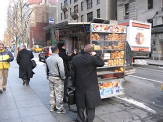 ニョーヨークはべンダーといって露店が朝から早くいたるところに出ています。しかし、とにかく寒い!!