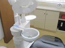当院では一人の患者さんの治療時間が長くかかるので、シートを人工皮の底反発素材の厚いクションにして、長時間の診療でも快適に過ごしていただけるようにしました。またスピットン(口をすすぐボール)や背もたれのシートが動き最新ハイテクがいろいろ備わっています。