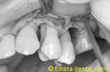 歯周病は歯槽骨(歯を支えている骨)が無くなる病気ですが、骨の無くなり方(骨欠損)の状態で、治療方法が決定します。従来は2次元的なレントゲンと歯周ポケット検査を頭の中で組み合わせて骨の欠損の形を想像していましたが、CTによる3次元的画像から、実際に骨の欠損状態がより確実にわかるようになりました。先日再生療法を行った治療例を紹介します。