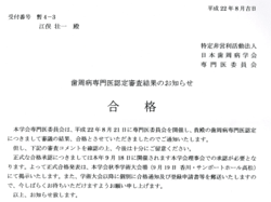 先日、今年の目標の1つである念願の日本歯周病学会歯周病専門医試験の合格通知が届きました。