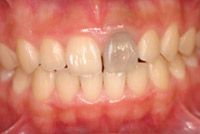 前歯を数年前に神経をとってしまったので向かって右の前歯が変色してます。年齢的に前歯は気になりはじめますよね。ラミネートも綺麗にしあがりますが、20歳前は出来るだけ前歯は被せないほうがよいですよ。