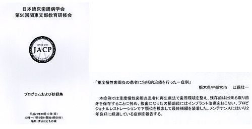 若い先生が多く、懇親会で「大変勉強になった。明日からの治療に有益になります」といわれ、診療を終わってからの資料作りは大変でしたが、うれしいですね。