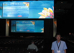 全体会議ともいうべきgeneral sessionの会場は3000人くらい入収容できるそうです。とにかく遠すぎて演者が見えません。何か所かのスクリーンで見ることになるわけで、プレゼンターの先生の姿も上映され、さながらロックスターのコンサートのようでもありそしてその雰囲気は、日本の学会では決して味わうことの出来ないものです。