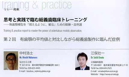 歯科技工(4月最新号)とうい歯科専門誌に私の症例が掲載されました。内容は総義歯です。
