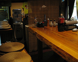 二荒山神社北側の通りを歩き、1本脇道に進み、細い小道をまがっていくと一軒の民家。引き戸を開けると、カウンター席が2つ。味わいある店内です。