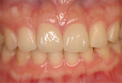 最も多いのが、上の前歯の中心に2ミリ程度の隙間がある「正中離開」というケースです。矯正せずにすきっ歯を治す方法はラミネートベニア法がお勧めです。この方法は歯の表面約0.5ミリ削り、そこにセラミックのシェルを接着することで、歯の隙間や色を改善します。2回の通院で痛みなく、自然な感じに仕上がりますので審美歯科領域において主流となっています。