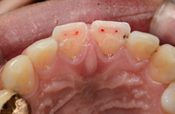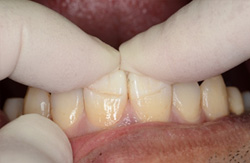 もってきた折れた歯冠の戻り具合(位置、方向)をまず確認します。 |