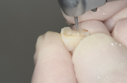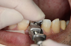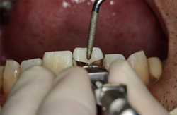 特別な専門の装置で折れた歯冠を本来の正確な位置にもどします。 |
