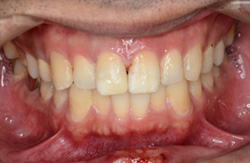 前歯2本が大きく折れてしまってます。 |