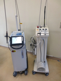 左がEr:YAG (エルビウム ヤグ)レーザー 右がCO2(炭酸ガス)レーザー