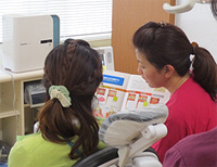 患者さんに、わかりやすく歯周病の原因をお話ししています。