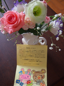 今年も近所の幼稚園の園児達から、感謝の言葉と花束が届きました。
