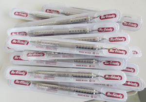 先日はご覧のように多くのグレーシーキュレットスケーラーが納品されました。歯周病基本治療には欠かせないもので、歯科衛生士にとってはとても大切な商売道具です。当院では衛生士は自分で使用するスケーラーを各自管理しシャープニングします。消耗品ですのでセールの時期にまとめ買いします(笑)。