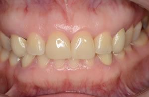 治療方法として(1)矯正治療 (2)コンポジットレジン法 (3)ラミネートベニヤ法の長所・欠点をお話しラミネートベニヤ治療を選択されました。 |