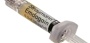 エムドゲインは歯周組織再生誘導材料のことです。子供のころに歯が生えてくる際に重要な働きをするたん白質の一種でできています。 歯周外科手術の際に、手術部位にエムドゲインゲルを塗布することで、初めて歯が生えたときと同じような歯周組織の再生を促進し、破壊された歯周組織を再生させることができるようなりました。