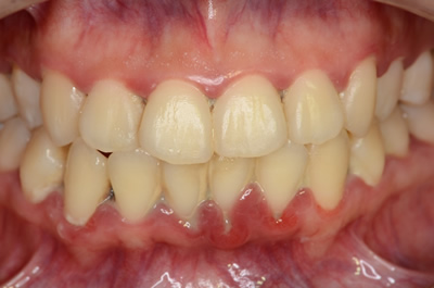 当院では歯周病治療を行う前に患者様に必ず上記の事を説明し治療にあたります。健康な『歯肉の形態』は、歯肉の下にある歯を支えている『骨の形態』に依存します。初診時に腫れ上がっていた歯肉は、歯周病治療していくと歯肉が引き締まり、レントゲンで見ることが出来る骨の形態に近似するように歯肉が治癒していくからです。これは健康な治癒状態を意味しますのでご心配ありません。