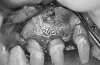 根の病気ではよくあらわれるものに、フィステルといいます。疲れたりするとやぶれて白いうみが出てきたりします。まず再根管治療をおこないます。しかし再根管治療の再発率は高く、また再根管治療を繰り返すと歯が薄くなって再治療ができなくなってしまう(抜歯になる)ことが多いのです。再根管治療で治らなければモダンエンドドンティック・マイクロサージェリー(現代的な外科的歯内療法)をおこないます。