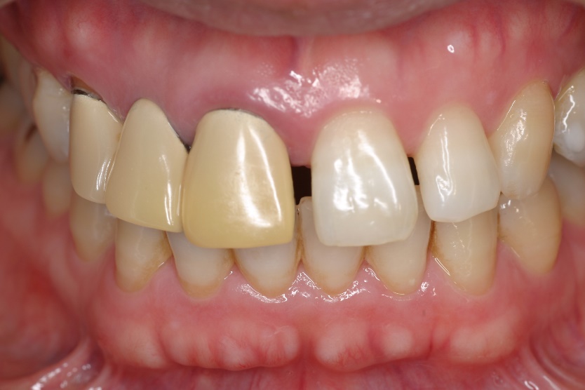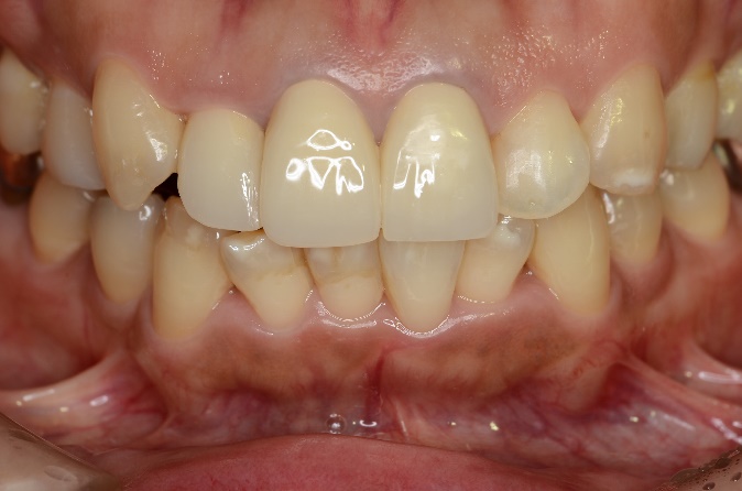 セラミッククラウンとコンポジットレジンによる審美修復治療をおこないました。