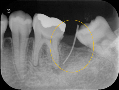 膿の原因は一番近い向かって右側の歯でなく、向かって左側の歯でした。