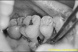 CT画像です。内側から分岐部まで破壊されいます。外側の骨は破壊されていません。