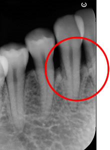 歯の周りには骨が破壊され、感染源も残っていました。