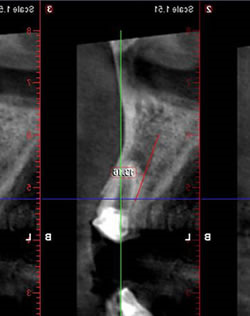 術後のCT像です。いいポジションにはいりました。(インンプラントを専門に行っている先生はわかるのですが一般の人には専門的でわかりませんね)。抜歯即時インプラントは難度の高いオペですが、患者さんにとって、切開しないため痛みもなく、当日仮歯も入り、オペの回数を減らせるのでとても有効な治療方法です。