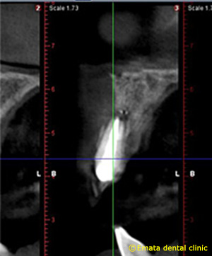 CT検査をしました。再根管治療をおこなっても、根が吸収してるので、歯が薄くなり、抜歯に近くなります。