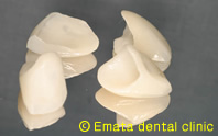 ジルコニアとは人工ダイアモンドとして有名で歯科領域では究極の審美性素材として今、大変注目を浴びています。従来のオールセラミッククラウン(金属を使用していない差し歯)の割れやすい欠点を解決し、セラミッククラウン(金属を使用した差し歯)に比べて光の透過性が高いので、透明感、自然感が得られもっとも天然歯に近く仕上がります。また金属を一切使わないため、口腔内環境(金属アレルギー)にも安心してご利用いただけるという利点もあり、現時点では最も理想的と考えられている材料です。