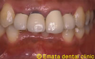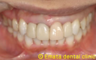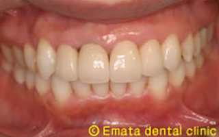 患者さんは47歳女性の方です。10年前に治療した前歯4本が気になり人前で笑うのもいやだとのことです。精密な診査・診断をおこない被せ物をだけを治しても良い結果はでず、矯正治療の必要性をお話しました。最初は患者さんも躊躇しましたが、治療が終わって矯正治療もやって本当によかったとのことです。