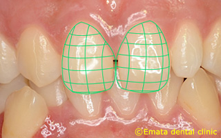 外側の隅角部(カーブしている)までラミネート治療をおこない自然観を出す点がポイントです。