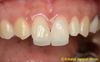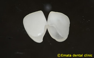 ラミネートベニヤです。イメージはコンタクトレンズのようです。技工士の技術力が治療結果を左右します。