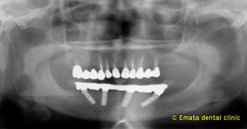 患者さんは長年義歯で不自由されインプラントによるとりはずしをしない歯を希望され他の歯科医院を受診されたそうですが、そこでは骨がなくてインプラントは絶対に無理だといわれたそうです。患者さんは大層落胆されたそうです。