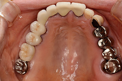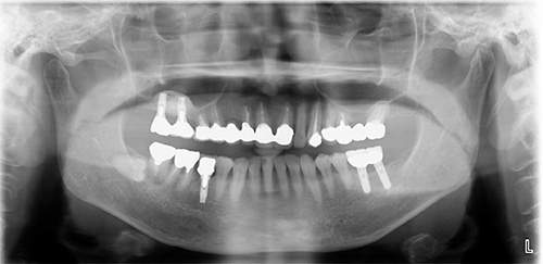 患者さんは他の医院で左下のインプラント治療をしましたが、上の奥歯は骨がないのでインプラント治療はできないとのことで紹介で来院しました。