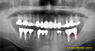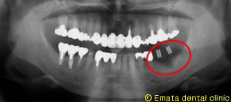 患者さんは4年前に、右奥歯を当院でインプラント治療をしまして、反対側の歯が折れている可能性があるので、治療を勧ましたが患者さんは痛くないのでこのままでいいということで、その後来院せず、去年の12月お痛みがあり救急で来院しました。