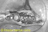 水平的 垂直的に骨造成するためチタンメシュをつかいました。