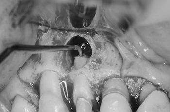 MTAセメントで逆根管充填します。MTAは非常に扱いにくい材料ですので特殊なキャリア、コンデンサーを使用します。