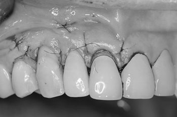 審美部位なので切開はマイクロメスで傷が目立たない部位に慎重におこない、縫合は7-0のナイロン糸を使用します。