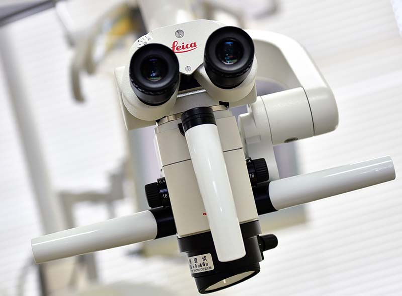 肉眼では見えない根管内部を数十倍に拡大して観察できる歯科用顕微鏡がマイクロスコープです。複雑に入り組んだ根管の隅々まで確認しながら治療を進めることで、感染源の取り残しを防ぎ、治療の成功率を大幅に向上させます。