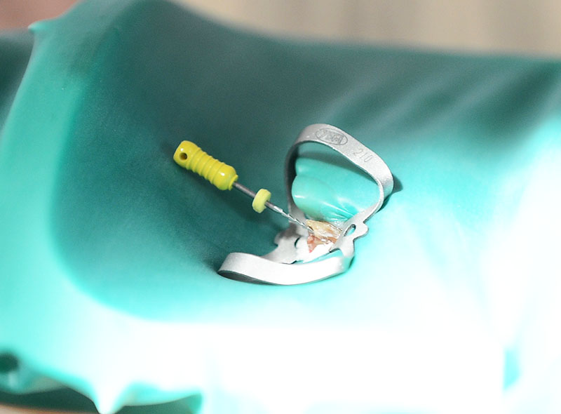 根管治療を成功させるのに最も重要なことは、唾液からの細菌の感染を防ぐためのラバーダムの装着です。ラバーダムとは、治療を行うときに歯に装着するゴムのことです。口全体を覆って治療する歯だけを出すので、細菌がお口の中に入るのを最大限防ぐことができます。日本では一般的な根管治療ではラバーダムを使用しません。