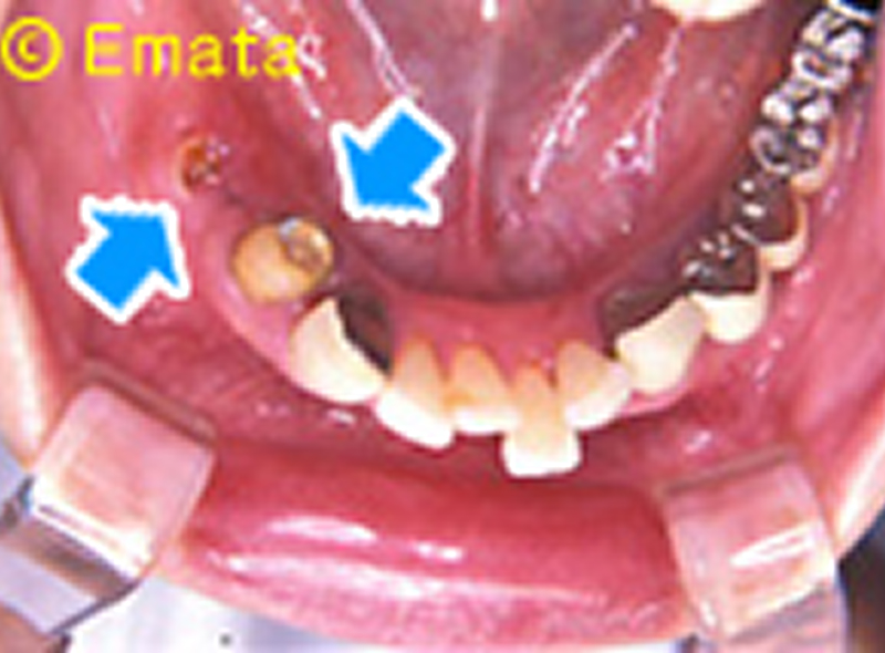 自分の残っている歯です。 丸の部分はインプラントを埋入しました。