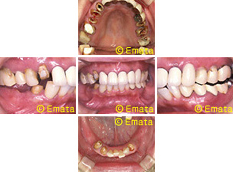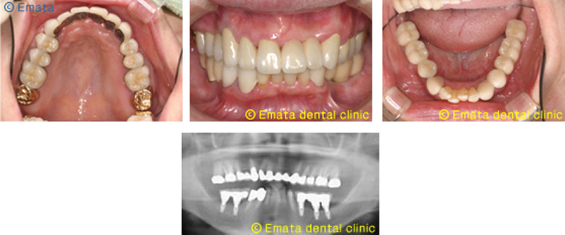 患者さんは上顎両側奥歯の外科治療をおこない、また下の両側の奥歯にインプラント治療をおこないました。