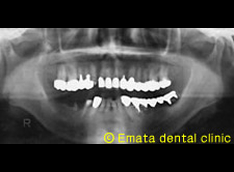 患者さんは上顎両側奥歯の外科治療をおこない、また下の両側の奥歯にインプラント治療をおこないました。